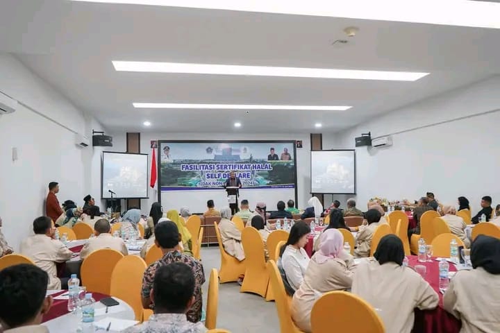 Kendari, Jaringansultra.com – Penjabat (Pj) Wali Kota Kendari Muhammad Yusup membuka secara kegiatan Fasilitasi Sertifikat Halal (Self Declare) berlamgsung selama tiga hari dengan peserta Fasilitasi Sertifikat Halal adalah warga-warga Kota Kendari yang memiliki nomor induk berusaha (NIB) di salah satu hotel di Kota Kendari, Kamis 11 Juli 2024.