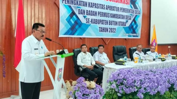 Buranga, Jaringansultra.com – Bupati Buton Utara (Butur) H. Muhammad Ridwan Zakariah membuka Rapat Koordinasi (Rakor) Peningkatan Kapasitas Aparatur Pemerintah Desa (Pemdes) dan Badan Permusyawaratan Desa (BPD)
