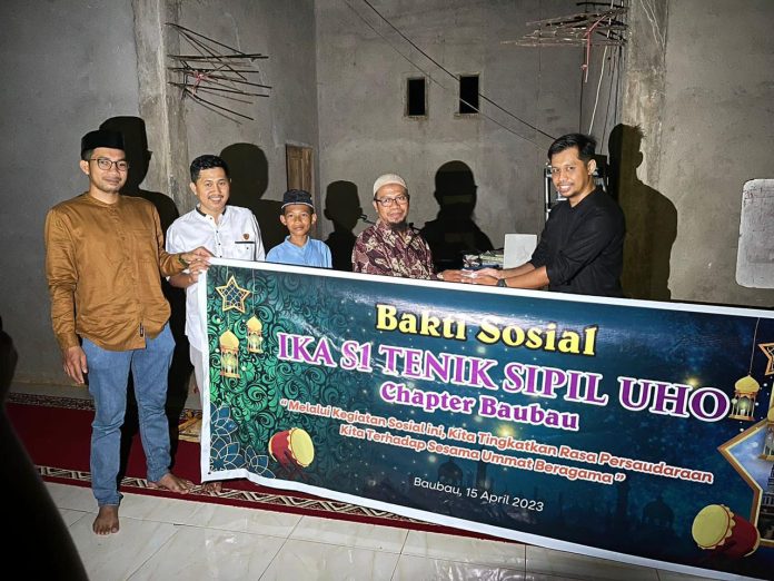 Baubau, Jaringansultra.com – Alumni Jurusan S1 Teknik Sipil, Universitas Halu Oleo (UHO) Chapter Baubau menggelar bakti sosial (Baksos) dan buka puasa bersama (Bukber) di Panti Asuhan Batinaqul Haq, Baubau, Sulawesi Tenggara (Sultra), Sabtu 15 April 2023.