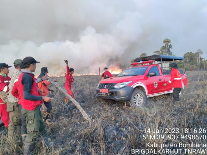 di Kecamatan Lantari Jaya, Kabupaten Bombana Provinsi Sulawesi Tenggara (Sultra) terbakar, pada Sabtu 14 Januari 2023.