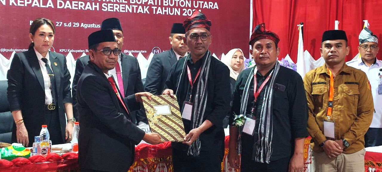 Buranga, Jaringansultra.com- Pasangan Calon (Paslon) Bupati dan Wakil Bupati (Butur) pada Pilkada 2024, Abdul Salam Sahadia-Ahmad Afif Darvin resmi mendaftar dan dinyatakan diterima setelah dilakukan verifikasi dokumen oleh Komisi Pemilihan Umum (KPU) setempat, Kamis 29 Agustus 2024.