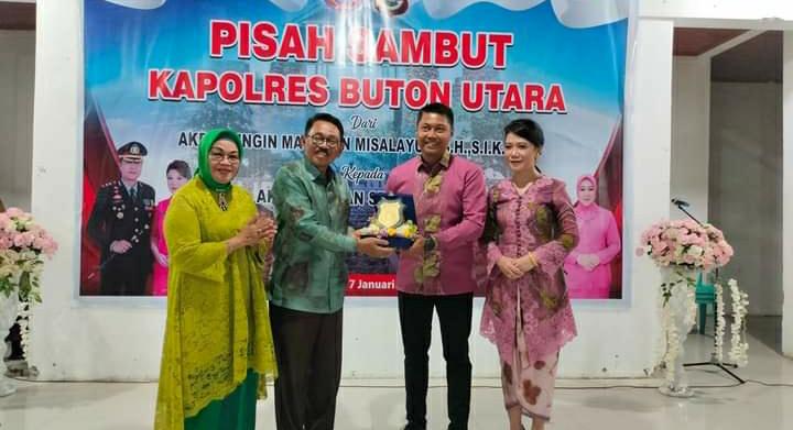 Dalam acara tersebut, Bupati Butur Dr. H. Muhammad Ridwan Zakariah, dan Ibu Dra. Hj. Muniarty M. Ridwan diikuti Wakil Bupati Butur Ahali, dan Ibu Amalia Ahali serta Pimpinan OPD menyerahkan plakat dan cenderamata sebagai tanda kenang-kenangan kepada AKBP Bungin Masokan Misalayuk, selaku mantan Kapolres Buton Utara yang telah pindah tugas menjadi Kapolres Kota Baubau.