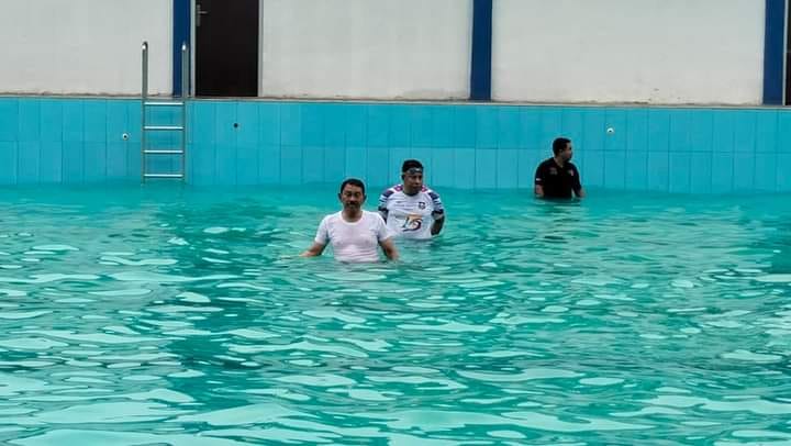 Sebagai tanda kolam renang yang begitu megah itu sudah dapat digunakan, Ridwan Zakariah didampingi istri Muniarty M Ridwan, serta Wakil Bupati Butur Ahali, dan Ibu Amalia Ahali mengajak Ketua DPRD Butur H. Muhammad Rukman Basri, dan seluruh Pimpinan Organisasi Perangkat Daerah (OPD) lingkup Butur untuk bersama-sama menyembur ke dalam kolam renang.