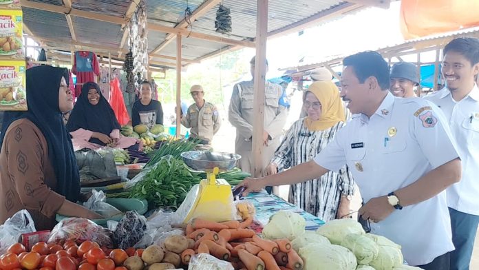 Di pasar Mina-minanga Bupati Butur bertemu langsung dengan para pedagang, distributor dan pembeli 9 bahan pokok seperti beras, bawang, minyak goreng, ikan, sayur dan bahan lainnya.