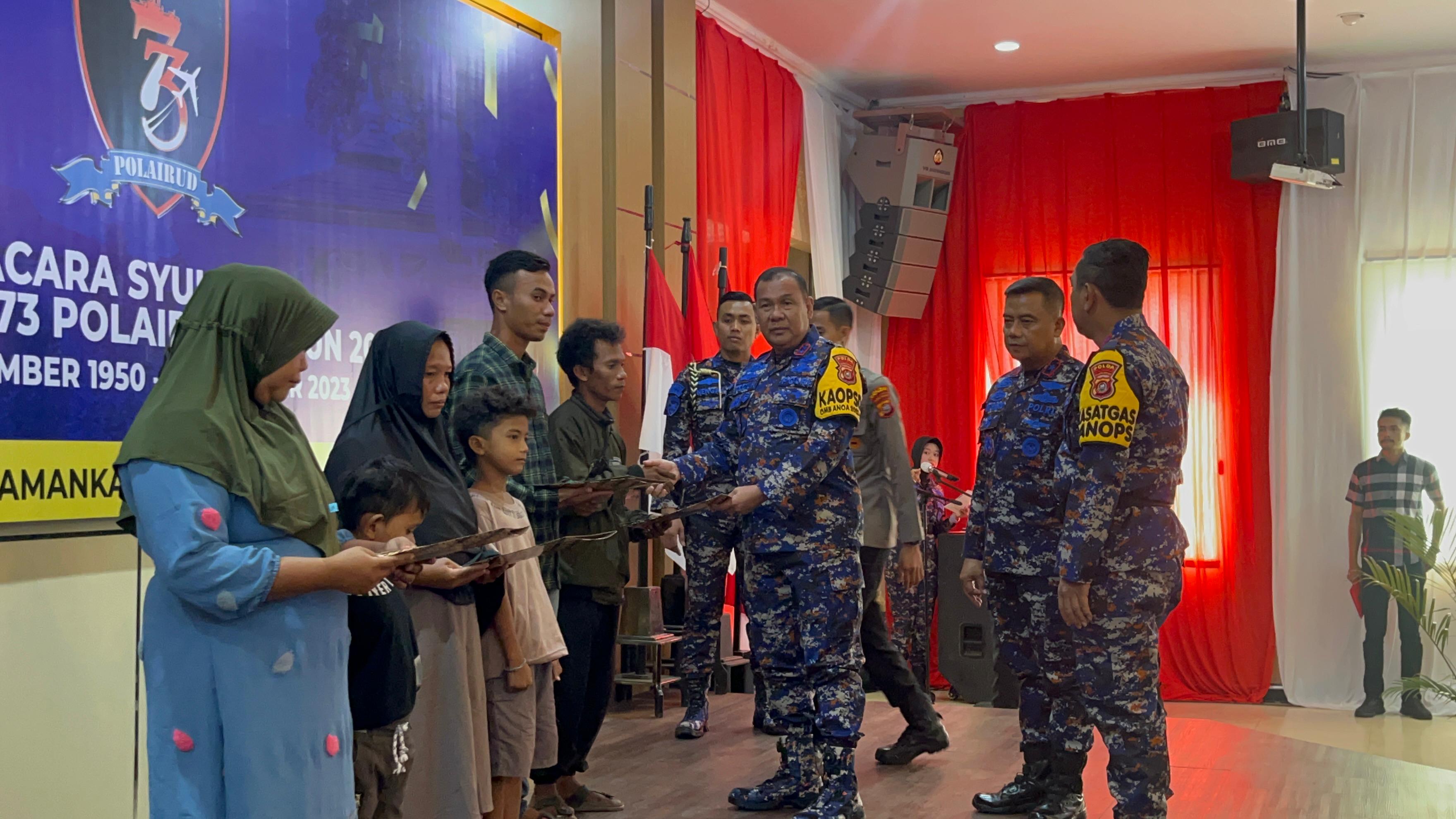 Syukuran dalam rangka memperingati HUT Polairud Baharkam Polri tingkat Polda Sultra di laksanakan secara sederhana dan berlangsung secara kekeluargaan karena dihadiri keluarga dari 4 (Empat) terduga pelaku bom ikan yang jadi korban penembakan oknum petugas Polairud Polda Sultra, di Pulau Cempedak, Kecamatan Laonti, Kabupaten Konawe Selatan (Konsel), Sulawesi Tenggara (Sultra).