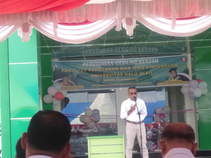 Kendari, Jaringansultra.com – Rektor Universitas Halu Oleo (UHO) Kendari, Prof Muhammad Zamrun meresmikan gedung perkuliahan baru Fakultas Kehutanan Dan Ilmu Lingkungan (FHIL), Senin 30 Januari 2023.