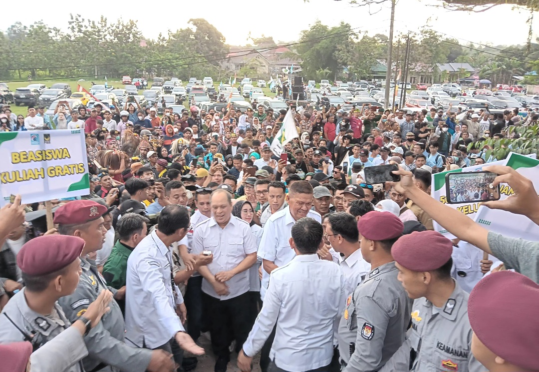 Selain pendukung dan simpatisan, kedatangan paslon Gubernur Ruksamin-Sjafei Kahar dengan tegline HARUS SELARAS juga diantar para kaum milenial dan para pimpinan partai pengusung yakni PBB dan Partai Gelora.