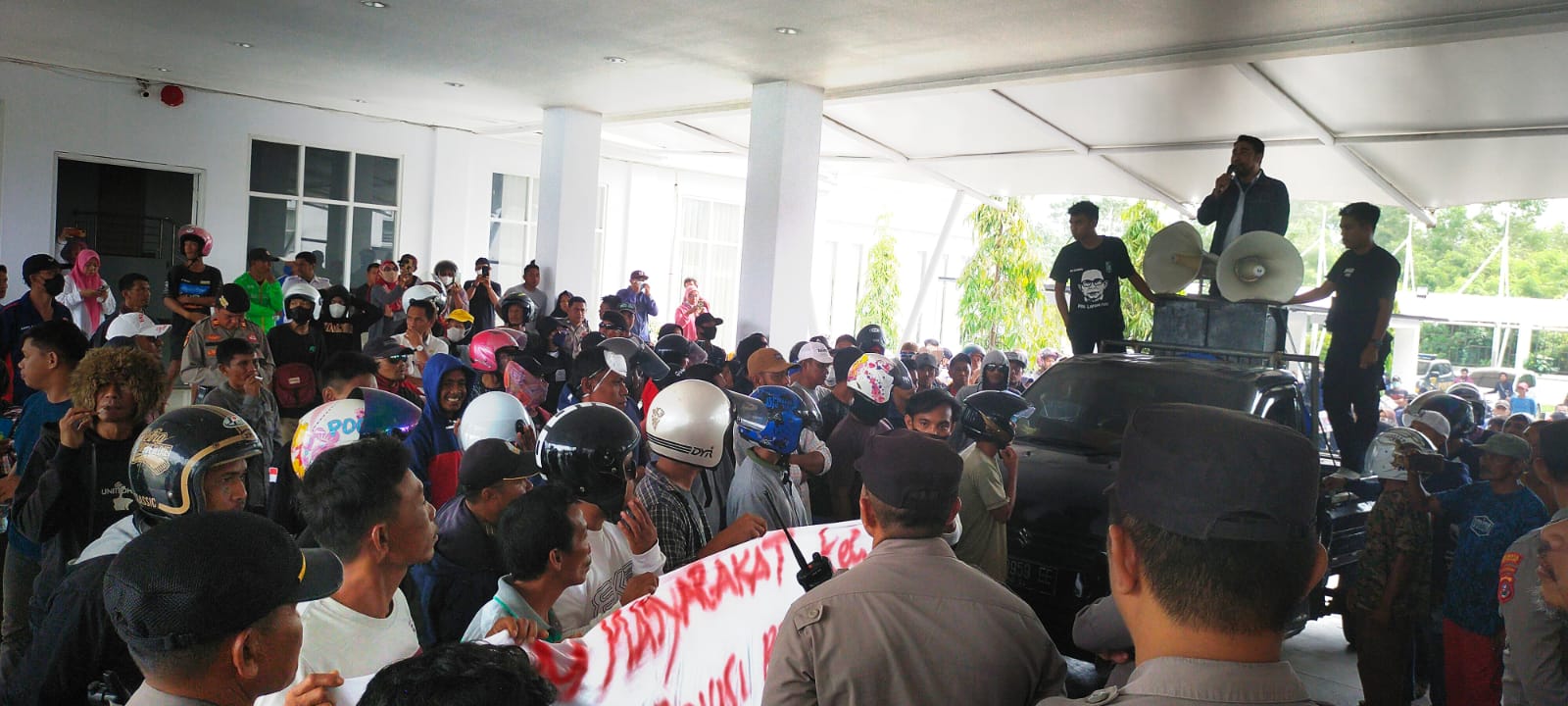 Kordinator Lapangan Djumrin mengatakan, kedatangan masyarakat dari Kecamatan Nambo untuk menyampaikan aspirasi terkait permasalahan tambang pasir galian yang telah dihentikan yang membuat mata pencaharian masyarakat ditutup.