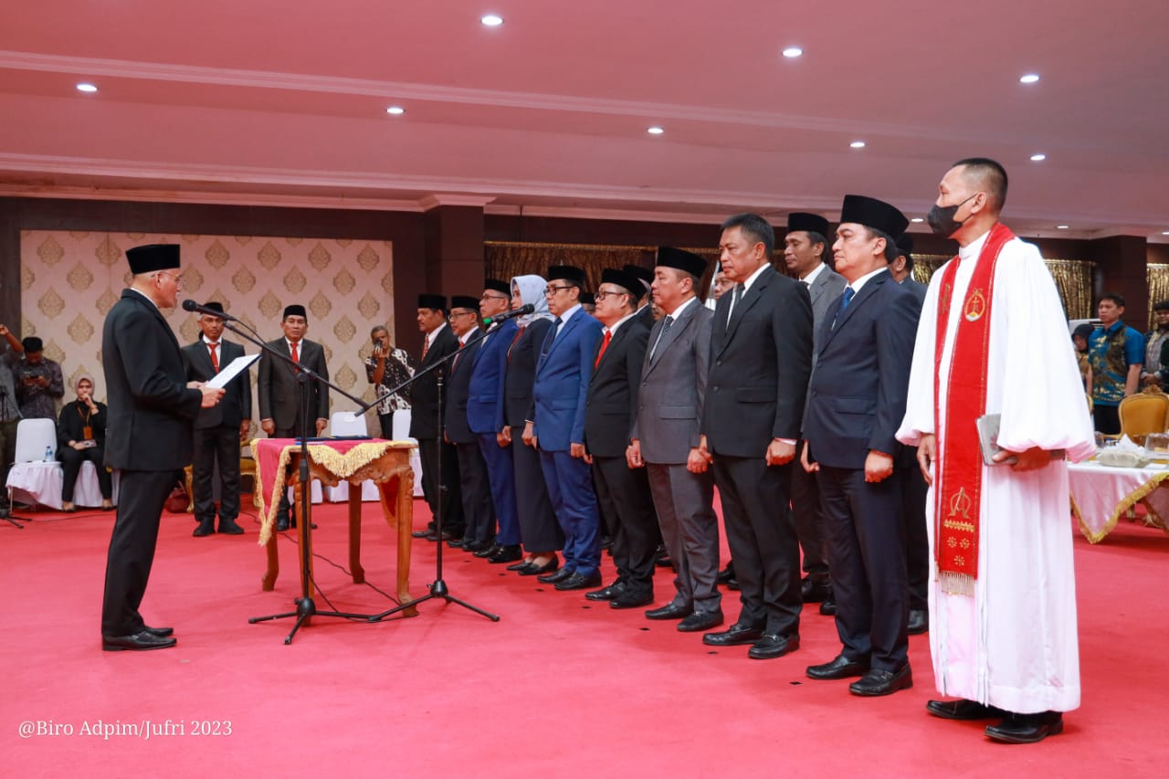 Pelantikan dan pengambilan sumpah jabatan dipimpin oleh Sekretaris Daerah Provinsi Sultra, Asrun Lio, di Aula Rujab Gubernur Sultra tadi sore.