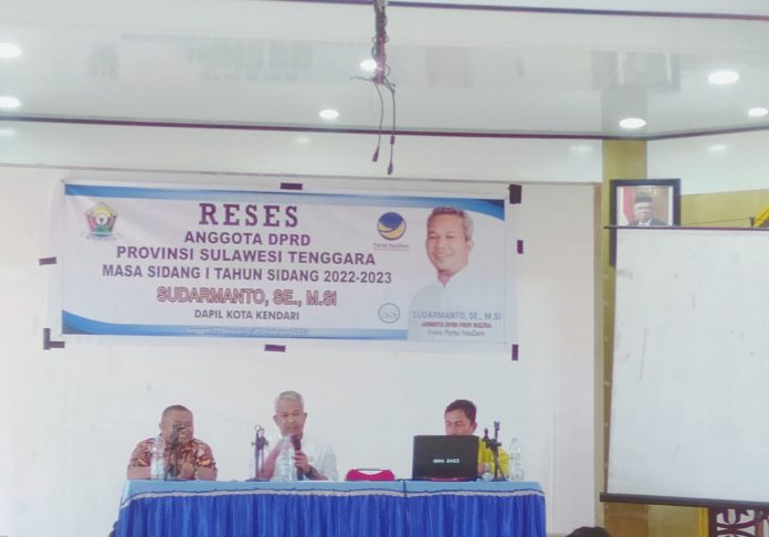 Kendari, Jaringansultra.com – Anggota Dewan Perwakilan Rakyat Daerah (DPRD) Sulawesi Tenggara (Sultra), Fraksi Nasdem Sudarmanto, melaksanakan reses masa sidang I Tahun 2022-2023, di Sekolah Menengah Kejuruan (SMK) Negeri 2 Kendari, Jumat 3 Februari 2023.