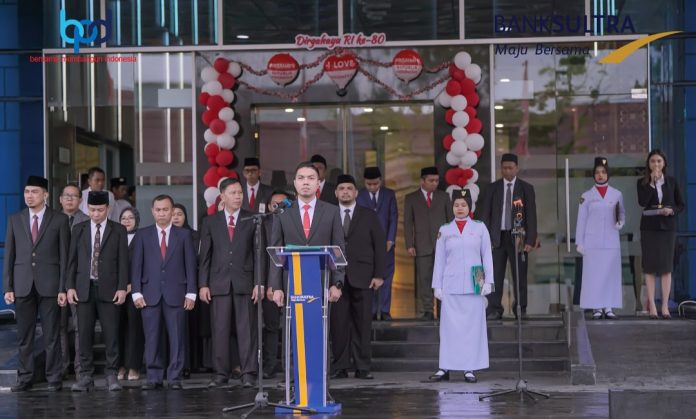 Kendari, Jaringansultra.com – Dalam rangka memperingati Hari Ulang Tahun (HUT) Kemerdekaan Republik Indonesia yang ke-80, Bank Sultra menggelar Upacara Bendera pada Minggu, 17 Agustus 2025, yang bertempat di halaman Gedung Tower Bank Sultra, dengan mengusung tema nasional “Bersatu, Berdaulat, Rakyat Sejahtera Indonesia Maju”.