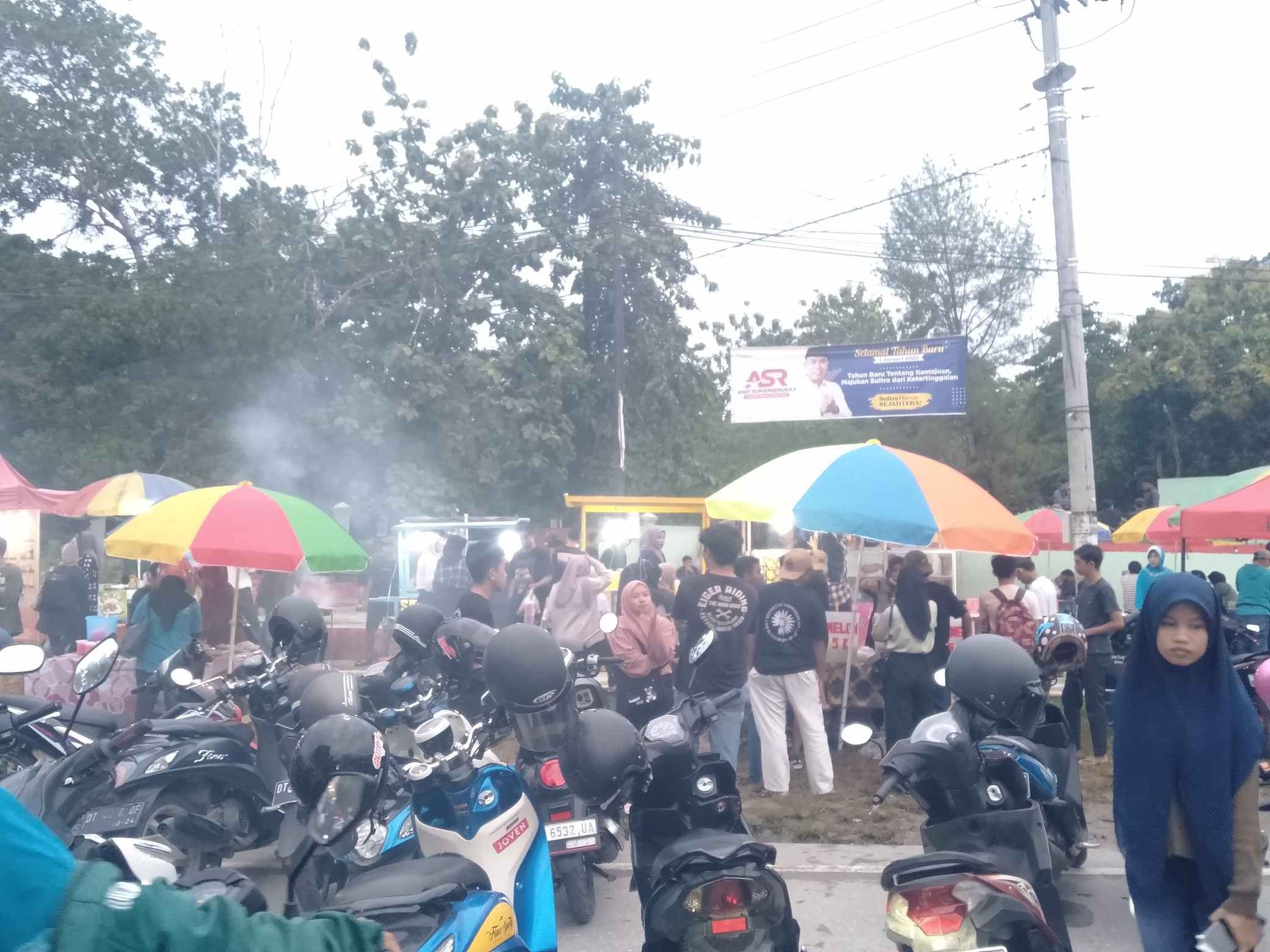 Terlihat juga banyak pedagang yang menjajakan berbagai macam menu takjil dengan harga yang ekonomis sehingga menjadikan bundaran kantor gubernur dipadati oleh masyarakat.