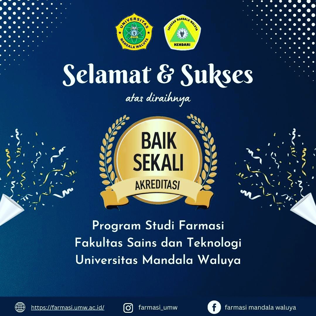 Kendari, Jaringansultra.com- Progam Studi Farmasi Fakultas Sains dan Teknologi, Universitas Mandala Waluya Kendari (UMW), mendapatkan Predikat Akreditasi dari Lembaga Akreditasi Mandiri Perguruan Tinggi Kesehatan (LAMPTKES) dengan predikat Baik Sekali.