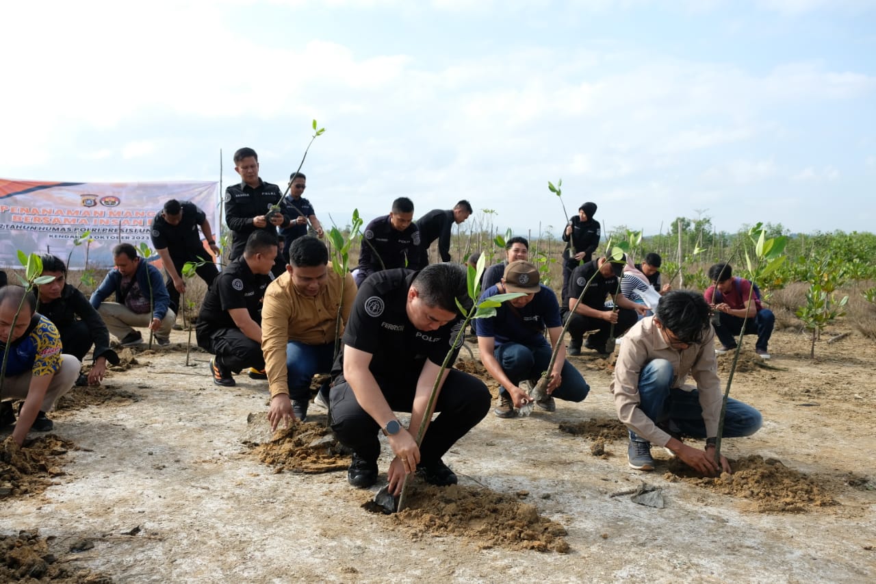 “Hari ini seluruh Humas Polda dan jajaran Polres melakukan penanaman bibir mangrove di wilayah masing-masing,” ujar Kombes Ferry Walintukan.