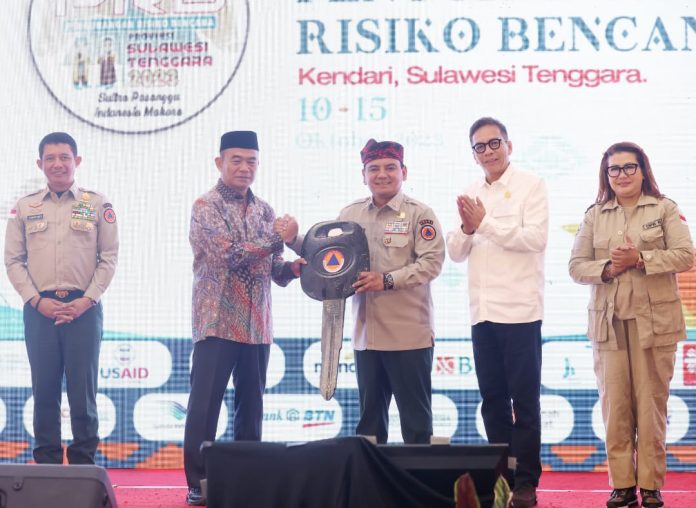 Kendari, Jaringansultra.com – Puncak acara peringatan Bulan Pengurangan Risiko Bencana (PRB) tahun 2023 dilaksanakan di Bumi Anoa, Sulawesi Tenggara (Sultra) tanggal 10 sampai 15 Oktober 2023 dihadiri oleh sejumlah tokoh penting dari berbagai instansi, termasuk Menko Bidang Pembangunan Manusia dan Kebudayaan Prof. Dr. Muhadjir Effendy dan Kepala Badan Nasional Penanggulangan Bencana (BNPB) Letjen TNI Suharyanto. Jum’at 13 Oktober 2023.
