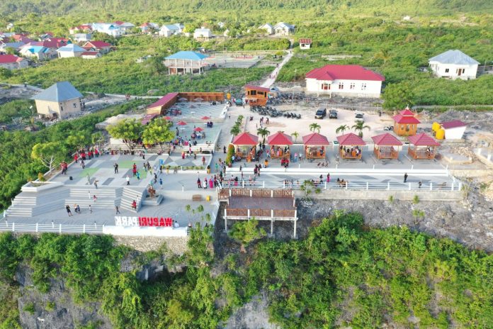 Diinisiasi swadaya masyarakat yang digerakkan oleh kepala desanya kala itu, seorang wanita, Wa Aua, mereka membangun fasilitas wisata yang diberi nama Waburi Park. Kekayaan budaya dan tradisi, potensi hasil laut yang melimpah, dan pemandangan laut dari tepian bibir tebing adalah jualannya.