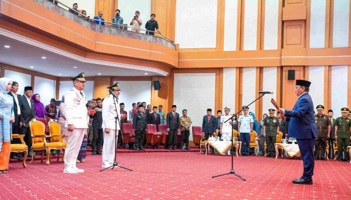 Kendari, Jaringansultra.com – Pejabat (Pj) Gubernur Sulawesi Tenggara (Sultra), Komjen Pol (P) DR. (H.C) Andap Budhi Revianto melantik Bupati Kolaka Timur Abdul Aziz (Koltim) dan Pejabat (Pj) Bupati Bombana Edy Suharmanto di Ruang Pola Kantor Gubernur. Senin, 27 November 2023.