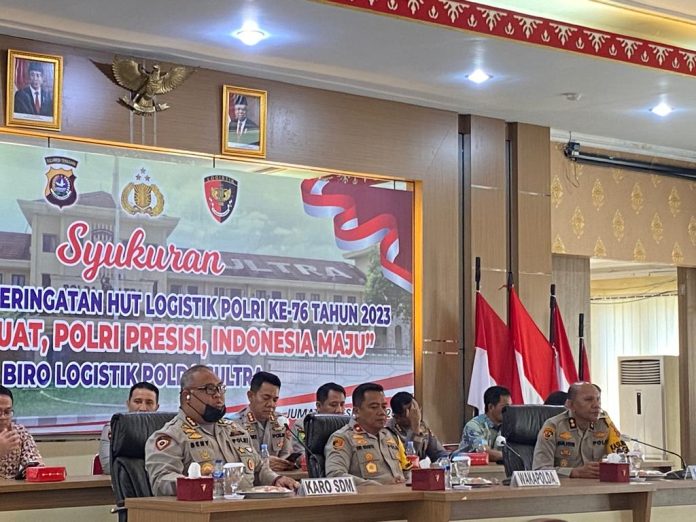 Kendari, Jaringansultra.com – Wakapolda Sultra Brigjen Pol Dwi Iriyanto bersama dengan Karo SDM Polda Sultra Kombes Pol Danang Beny K. didampingi Kabag Bekum Biro Logistik Polda Sultra AKBP Dahir dengan antusias menyambut perayaan ulang tahun ke-76 Logistik Polri yang bertema “Logistik Kuat Polri Presisi Indonesia Maju”, Jumat 8 Desember 2023, yang bertempat di Aula Dachara Mapolda Sultra.