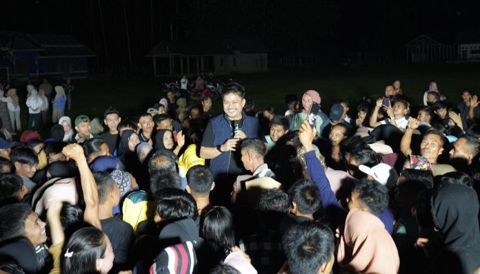 Bupati Koltim, Abdul Azis bersama masyarakat di malam acara hiburan di Lapangan sepak bola Kecamatan Uuesi.