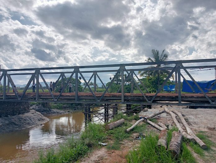 Seperti yang terlihat pada Rabu 11 Desember 2024, jembatan yang menggunakan konstruksi Bailley ini, telah tuntas dikerjakan.