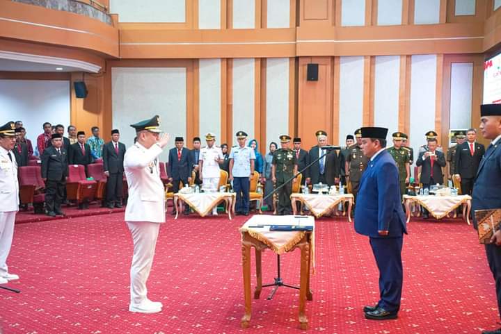 Kendari, Jaringansultra.com – Plt Bupati Kolaka Timur (Koltim) Abdul Azis resmi dilantik sebagai bupati definitif Koltim oleh Pejabat (Pj) Gubernur Sulawesi Tenggara (Sultra) Komjen Pol (P) Dr. (H.C) Andap Budhi Revianto di Ruang Pola Kantor Gubernur. Senin, 27 November 2023.