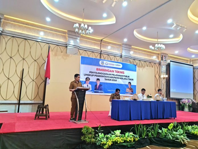 Kolaka Timur, Jaringansultra.com – Sekretaris Daerah (Sekda) Kabupaten Kolaka Timur (Koltim) mewakili Bupati Kolaka Timur membuka kegiatan Bimbingan Teknis (Bimtek) Penyelenggaraan Pelayanan Publik Lingkup Pemerintah Kabupaten Kolaka Timur Tahun 2024 di Hotel Zahra Syariah Kota Kendari, Senin 29 April 2024.