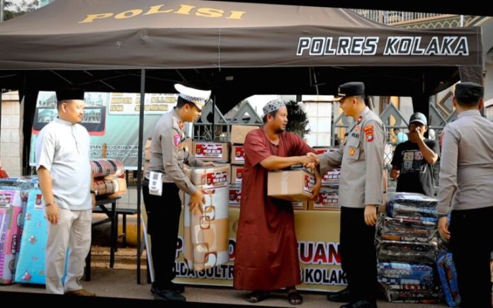 Kolaka, Jaringansultra.com – Personel Polres Kolaka dan Polda Sultra menyerahkan bantuan kemanusiaan dari Polri, untuk warga yang menjadi korban kebakaran, Minggu 29 Januari 2023.