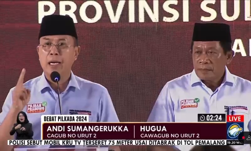 Hal ini disampaikan dalam debat publik kedua Pemilihan Gubernur (Pilgub) Sultra 2024 yang berlangsung di Kabupaten Kolaka, Jumat malam 1 November 2024.