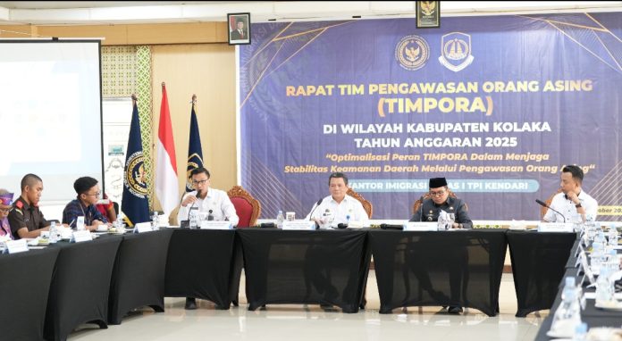 Kolaka, Jaringansultra.com — Kantor Imigrasi Kelas I TPI Kendari kembali menggelar kegiatan Rapat Tim Pengawasan Orang Asing (TIMPORA) di Kabupaten Kolaka, Sulawesi Tenggara, pada Kamis 30 Oktober 2025. Kegiatan ini mengusung tema “Optimalisasi Peran TIMPORA dalam Menjaga Stabilitas Keamanan Daerah melalui Pengawasan Orang Asing.”
