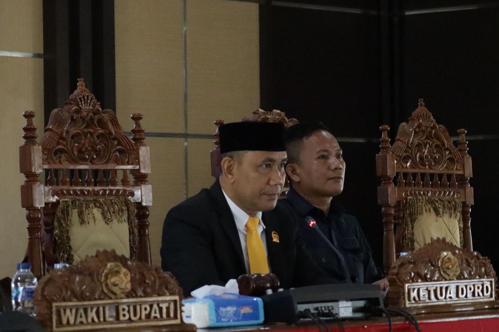 Paripurna Penyerahan ini dipimpin langsung oleh Ketua DPRD Hamrin, S.Kom., M.Ap, didampingi Wakil Ketua DPRD I Ronald Rante Alang, ST, Wakil Ketua Il Arjun, ST dan Anggota DPRD lainnya.