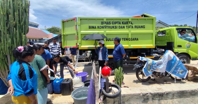 Kendari, Jaringansultra.com – Dinas Cipta Karya, Bina Kontruksi dan Tata Ruang Provinsi Sulawesi Tenggara (Sultra) menyalurkan bantuan air bersih bagi masyarakat yang terdampak kekeringan.