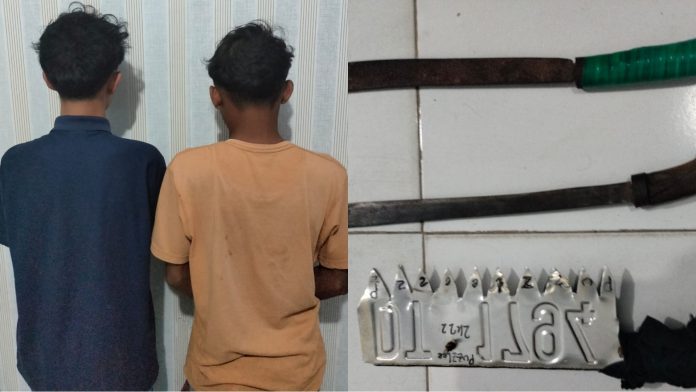 “Dua orang remaja tidak sempat melarikan diri dan disekitarnya ditemukan beberapa senjata tajam seperti dua bilah parang dan satu buah golok sisir,” ungkapnya.