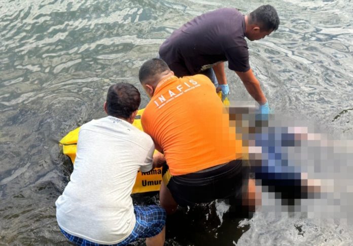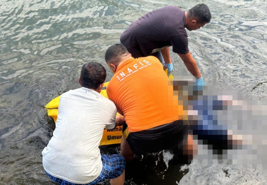 Korban pertama kali ditemukan warga sekitar pukul 13.40 WITa dengan posisi telungkup dan sudah membengkak.