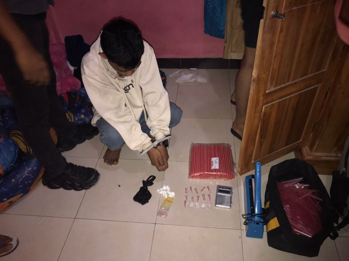 “Pada saat kami amankan pelaku sedang berkumpul dengan teman-temannya di kos dan tim melakukan penggeledahan yang disaksikan RT setempat dan mendapatkan narkoba jenis sabu siap edar sebanyak 25 paket,” ucapnya.