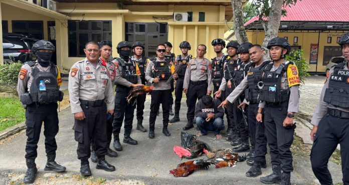 Ops Pekat Anoa 2025 mengamankan pelaku sabung ayam di Kemaraya, Kota Kendari.