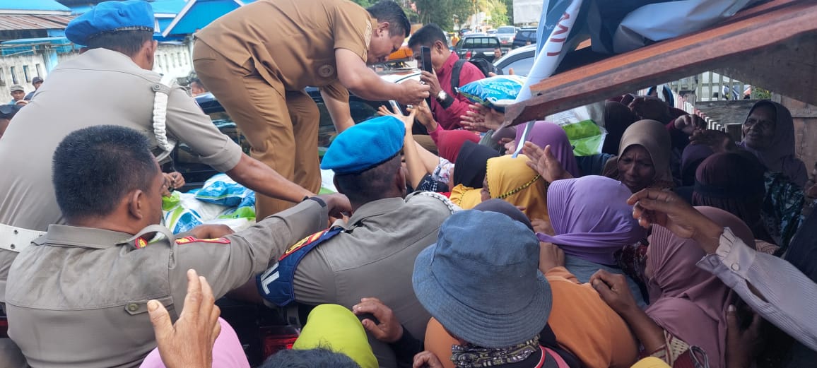 Selain membagikan beras, bupati juga berinteraksi langsung dengan para pedagang dan pengunjung untuk mendengar aspirasi dan masukan terkait kondisi pasar dan perekonomian setempat.