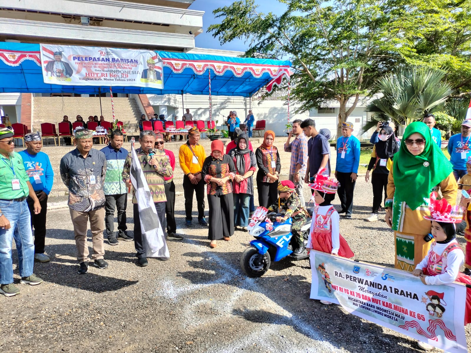 Plt Bupati Muna, Bachrun Labuta menyampaikan kegiatan pawai budaya anak-anak tingkat pendidikan Paud dan TK, sebagai rangkaian dari kegiatan memeriahkan HUT Muna dan menyambut HUT Republik Indonesia yang ke-79.