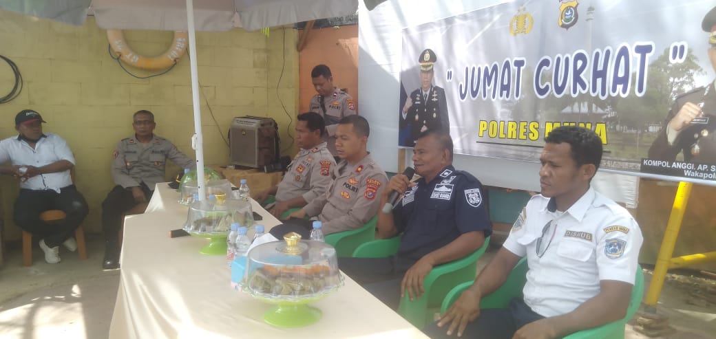 Pada Jumat Curhat kali ini, Polres Muna mendengarkan keluhan dari Tenaga Kerja Bongkar Muat (TKBM) Pelabuhan Nusantara Raha. Selain itu juga Jumat Curhat mendengar langsung keluhan masyarakat yang dihadapi, serta untuk lebih mendekatkan Polri dengan masyarakat.