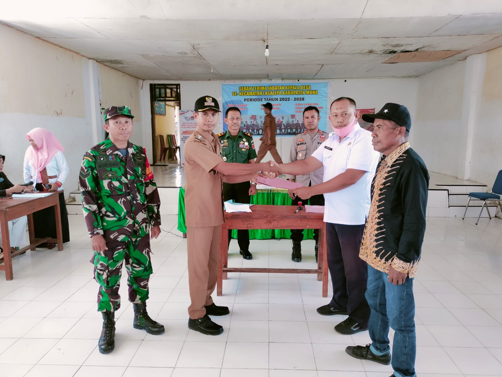 Sertijab kepala desa defenitif di tujuh desa dipimpin langsung camat Lasalepa, Hardyanto turut hadir Danramil Tampo Abdul Karim dan Kapolsek Tampo Fajar Hidayat dilaksanakan di kantor Kecamatan Lasalepa di Desa Labone, Rabu (18/01/2023).