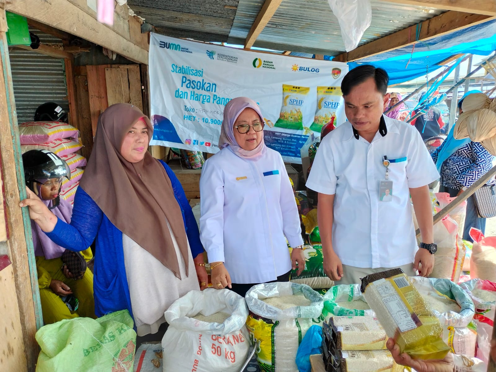 “Sejauh ini dari hasil pemantauan, pedagang Beras Bulog masih menjual sesuai dengan Harga Eceran Tertinggi (HET) yakni Rp. 10.900/Kg,” ungkapnya.