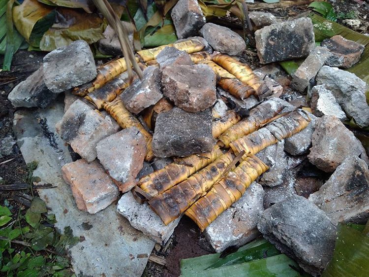 Setelah batunya benar-benar panas, masukan tombole ke dalam lubang galian. Tindis tatakan tombole menggunakan batu panas. Lalu tutup dengan beberapa lembar daun pisang hingga uap panasnya tidak menguap. Beberapa menit kemudian tombole sudah masak.