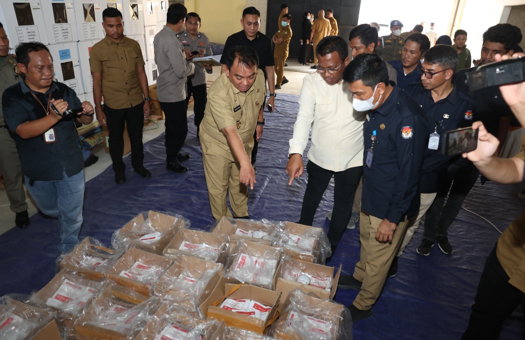 Peninjauan langsung ini dilakukan untuk memastikan seluruh logistik telah siap didistribusikan ke TPS-TPS yang ada setelah kemarin pelaksanaan Rakor Pemilu bersama Forkopimda, KPU, Bawaslu, TNI Polri dan stakeholder terkait.