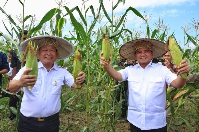 Pj. Gubernur Sultra, Andap Budhi Revianto didampingi Pj. Bupati Konawe H. Harmin Ramba, Kepala Perwakilan BI Sultra, Kepala Dinas Pendidikan dan Kepala Perangkat Daerah Pemprov Sultra, Kepala Sekolah, Guru, dan para siswa/siswi SMKN PP 5 Konawe, melakukan panen raya setelah tiga bulan pasca penanaman bibit tanaman pangan dan hortikultura di SMKN PP 5 Konawe.