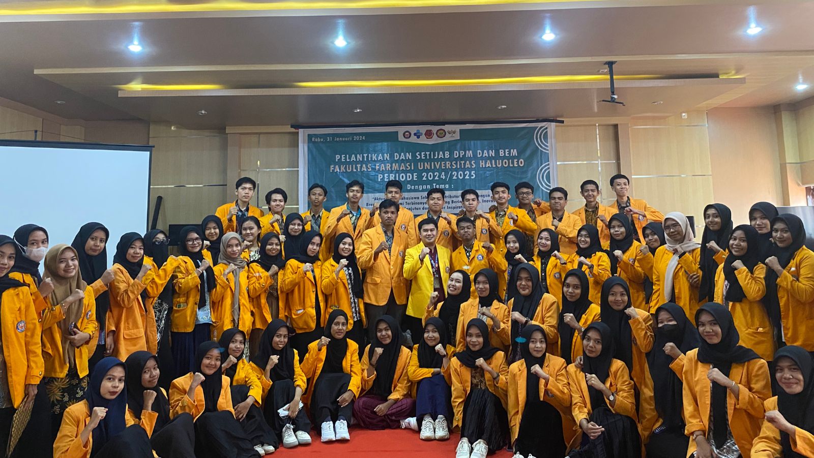 Kendari, Jaringansultra.com – Dekan Fakultas Farmasi (FF) Universitas Halu Oleo (UHO) Prof. Dr. Ruslin M.Si resmi melantik pengurus Badan Eksekutif Mahasiswa (BEM) dan Dewan Perwakilan Mahasiswa (DPM) program studi di Aula FF, Rabu, 31 Januari 2024.