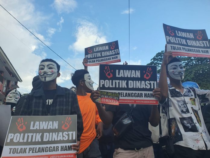 Koordinator lapangan (Korlap) Mimbar Demokrasi AMARA Sultra, Hasir menjelaskan kegiatan yang dilakukan hari ini dalam rangka menolak politik dinasti yang dipraktikkan rezim saat ini.