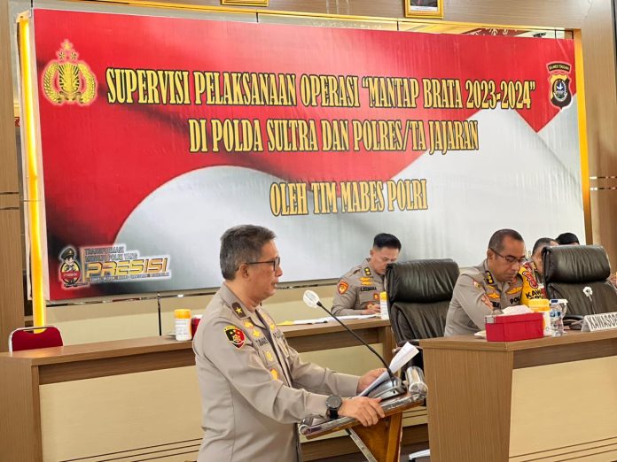 Supervisi ini dihadiri Irwasda Polda Sultra Kombes Pol Yun Imanullah, mewakili Kapolda Irjen Pol Drs. Teguh Pristiwanto, serta pejabat utama, para kapolres jajaran dan kasatgas ops.
