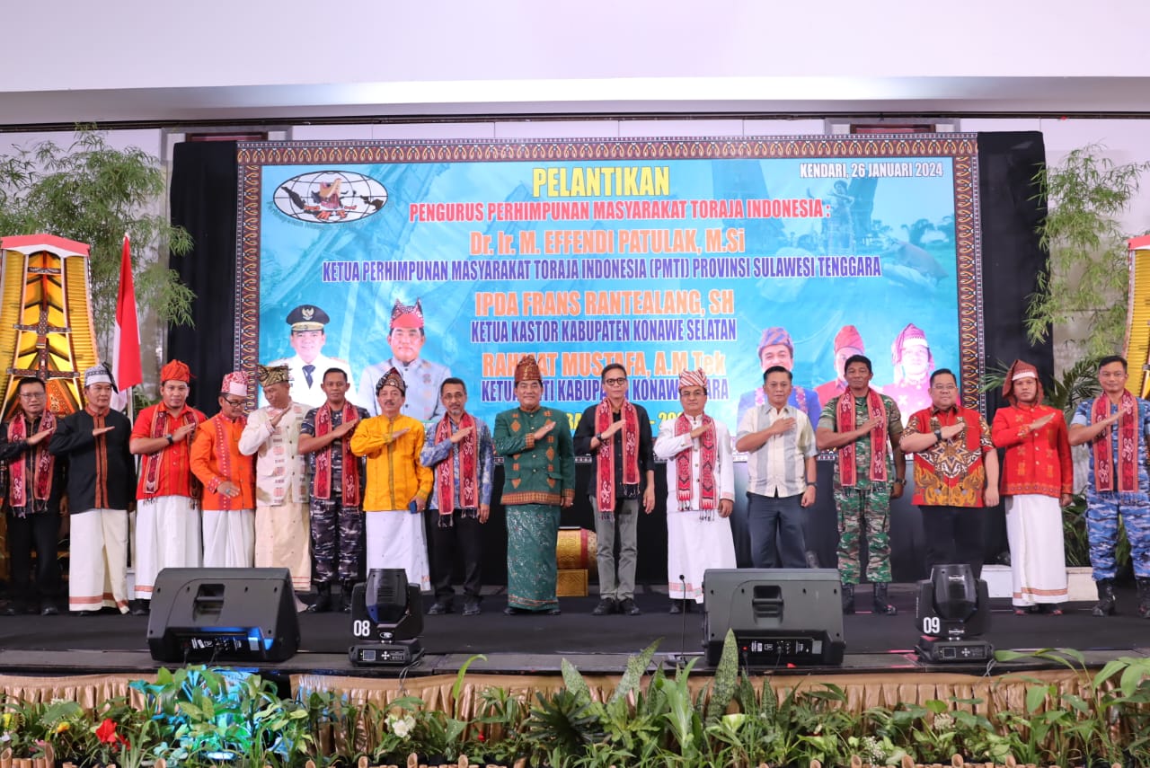 Kendari, Jaringansultra.com – Pengurus Perhimpunan Masyarakat Toraja Indonesia (PMTI) Provinsi Sulawesi Tenggara (Sultra) masa bakti periode 2023-2028 resmi dilantik atau kukuhkan pada Jumat, 26 Januari 2024.