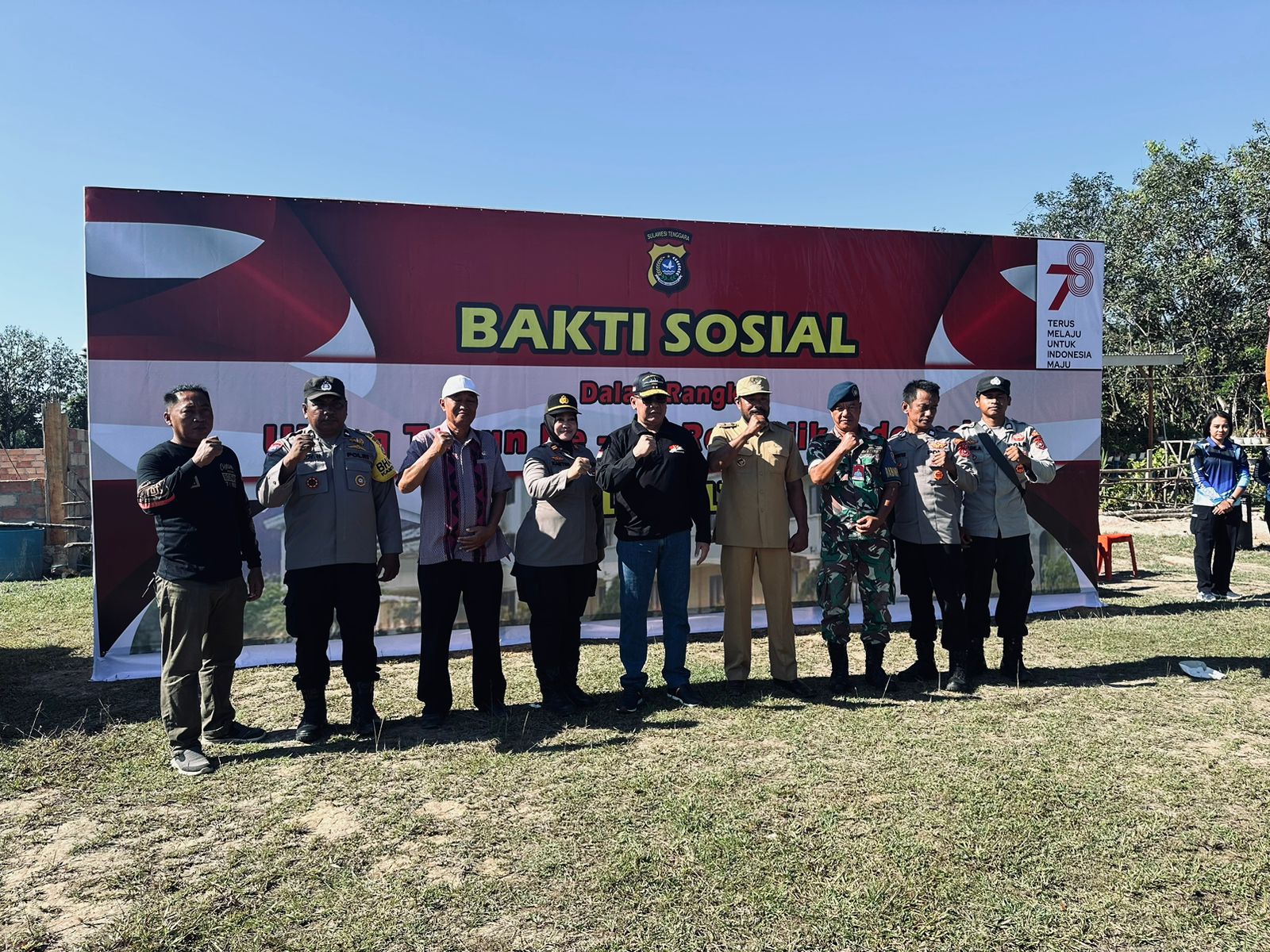 Kendari, Jaringansultra.com- Menyambut HUT ke-78 Kemerdekaan RI, jajaran Polda Sultra bersama anggota Forum Koordinasi Pimpinan Daerah (Forkopimda) Provinsi Sulawesi Tenggara (Sultra) diantaranya Komandan Korem 143 Haluoleo, Kepala Badan Intelijen Negara Daerah (Binda) Sultra, serta Komandan Pangkalan TNI Angkatan Udara (AU) Halu Oleo Kendari melakukan touring kebangsaan, dengan di rangkaikan Bakti Sosial (Baksos), Sabtu 19 Agustus 2023.