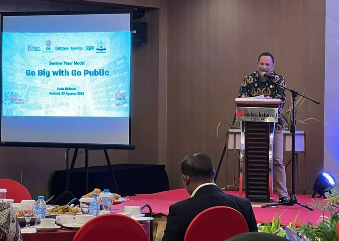 Diketahui, kegiatan Go Big With Go Public itu membahas pengembangan ekonomi di Bumi Anoa (Sultra). Adapun beberapa narasumber yang terlibat diantaranya Arjaya Dwi Raya Kepala OJK Sultra, Jeffrey Hendrik Direktur BEI dan beberapa narasumber lainya.