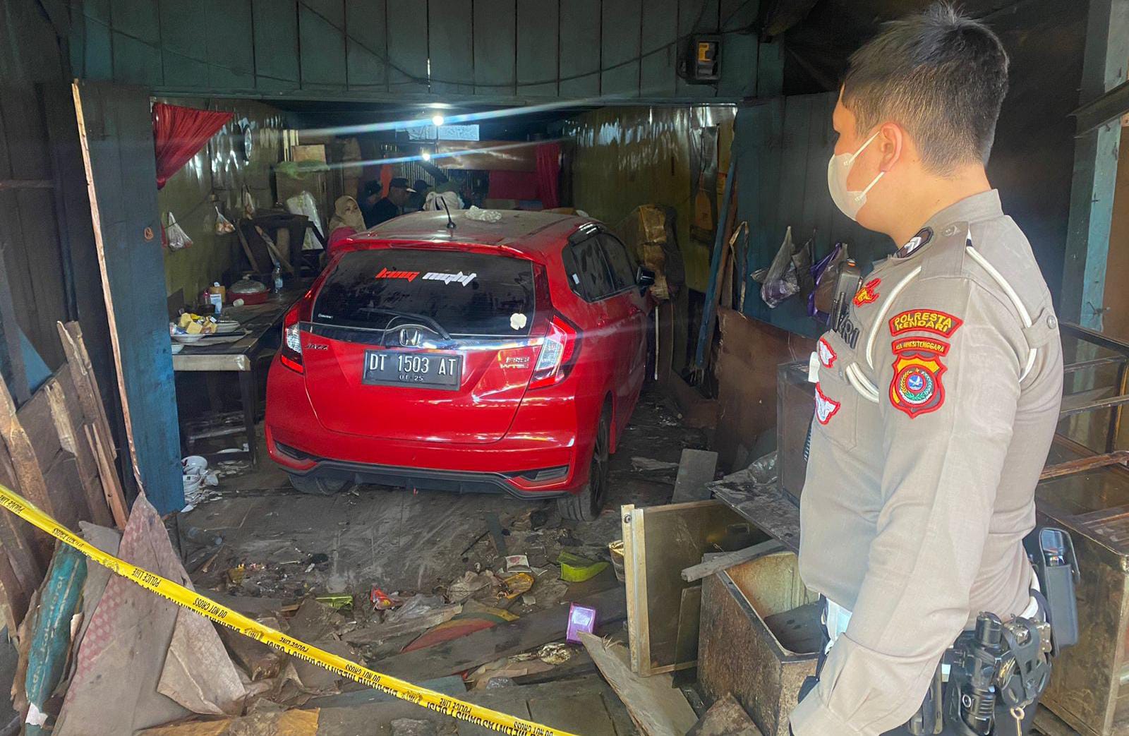 Lanjut Fadlan, setibanya di jalan Pembangunan mobil Honda Jazz kehilangan kendali hingga menabrak kendaraan sepeda motor yang diparkir dan dua warung makan.
